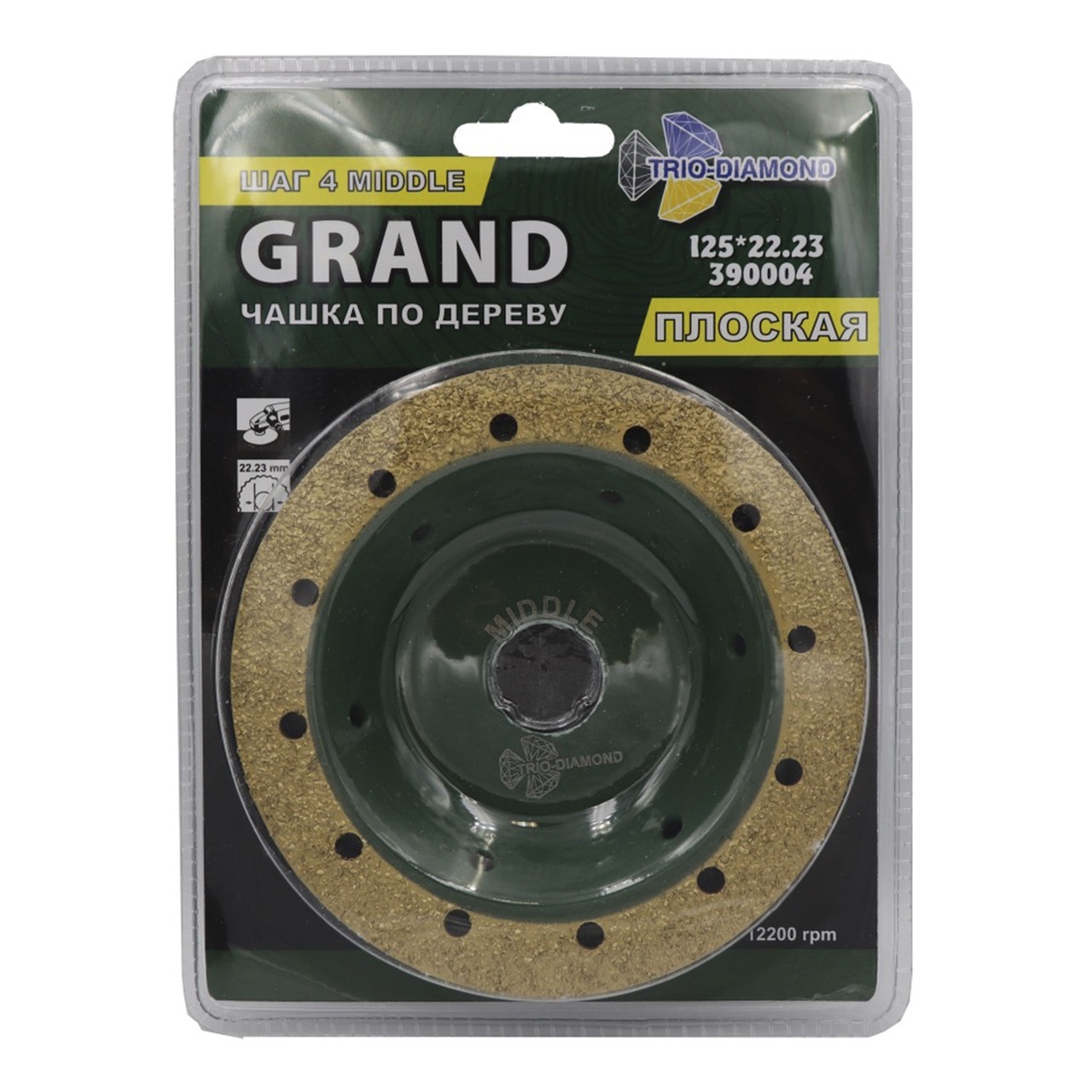Эта шлифовальная чашка от TRIO-DIAMOND серии Grand Плоская имеет сплошную плоскую рабочую кромку с шагом 4 Middle, что позволяет работать с максимальной скоростью до 12 200 оборотов в минуту.