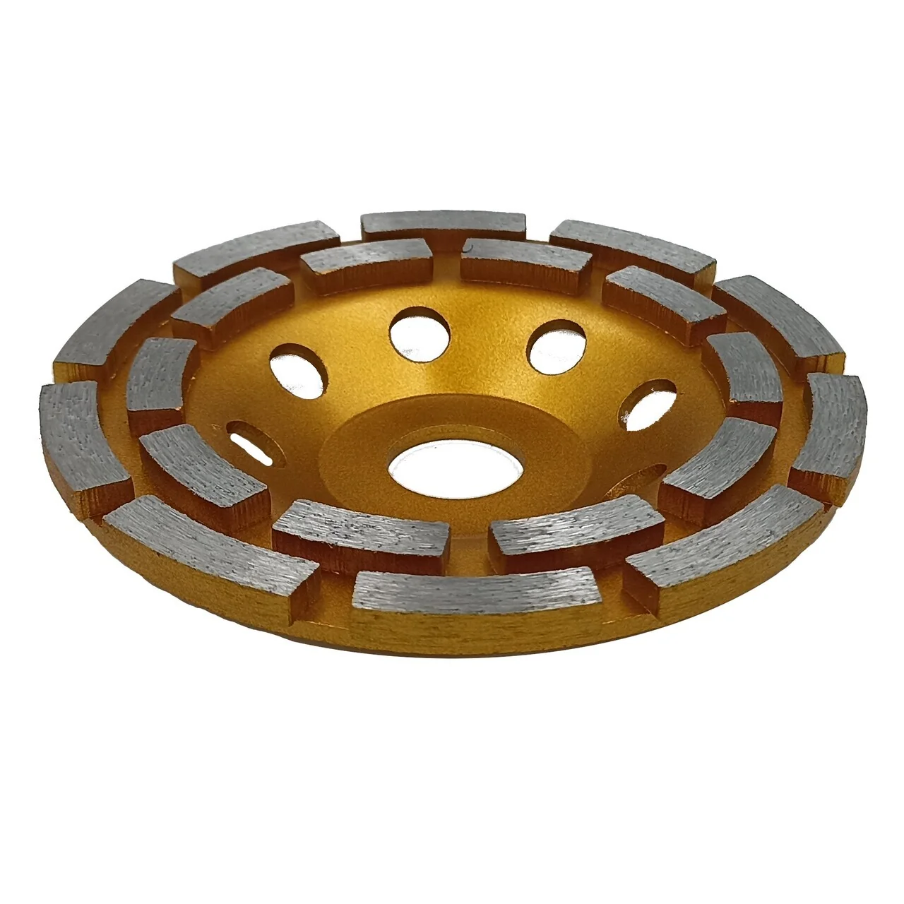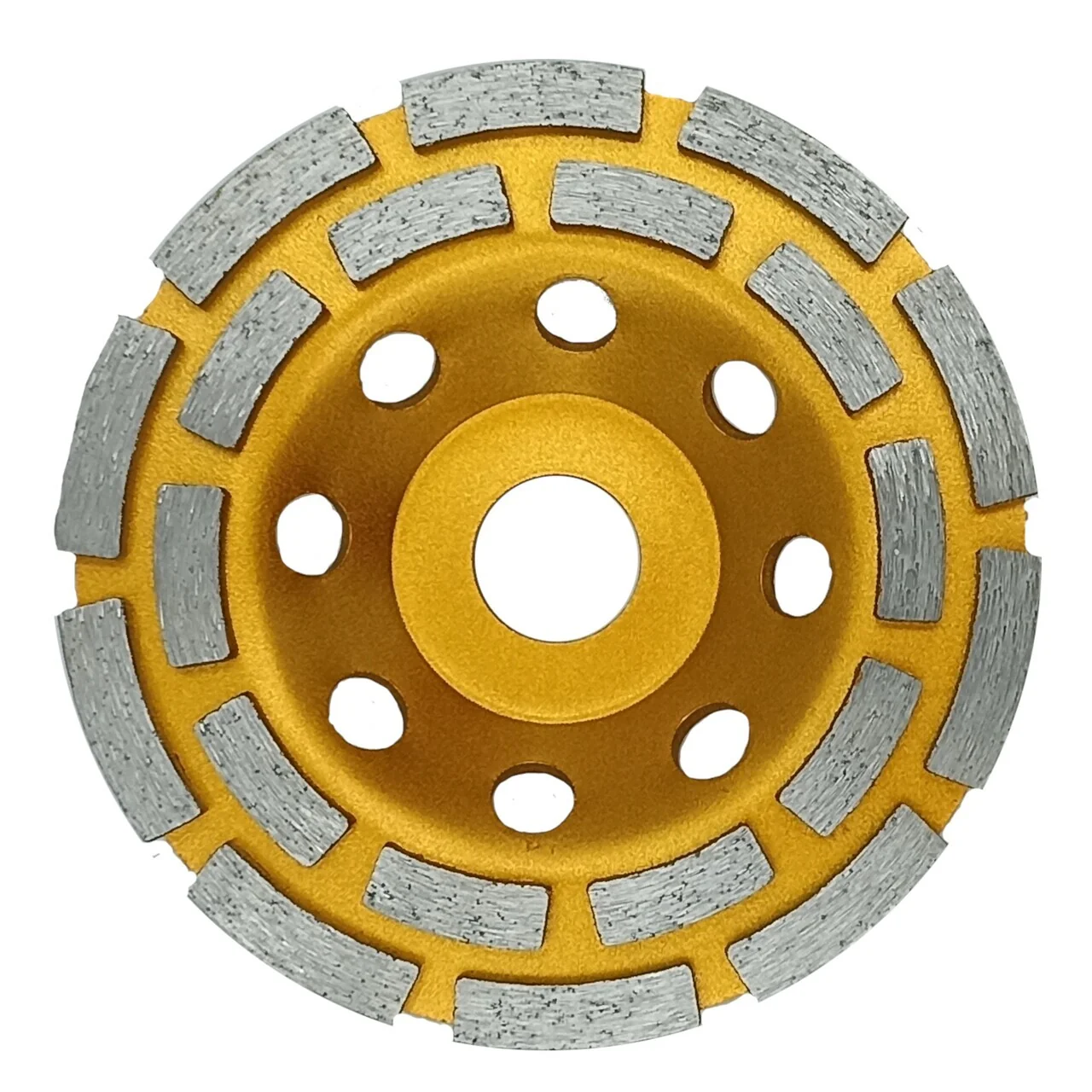Эта чашка разработана для использования с углошлифовальными машинами (УШМ). Благодаря наружному диаметру 125 мм и посадочному диаметру 22,23 мм, она легко устанавливается на большинство стандартных УШМ. Конструкция включает 20 сегментов с высотой 5 мм, что обеспечивает равномерное распределение нагрузки и долговечность.
