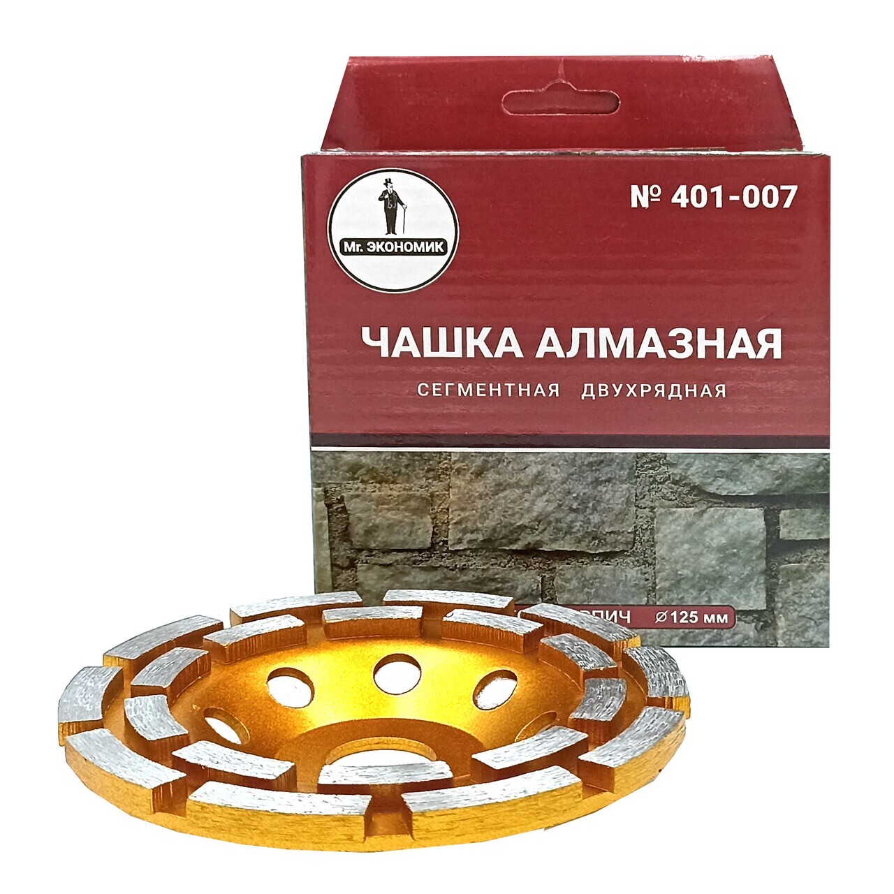 Выберите чашку алмазную сегментную Mr. ЭКОНОМИК 125 мм, 401-007, чтобы быстро и качественно выполнить шлифовку любых твердых поверхностей.