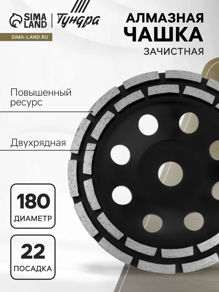Чашка алмазная зачистная ТУНДРА, двухрядная, 230 мм — Характеристики