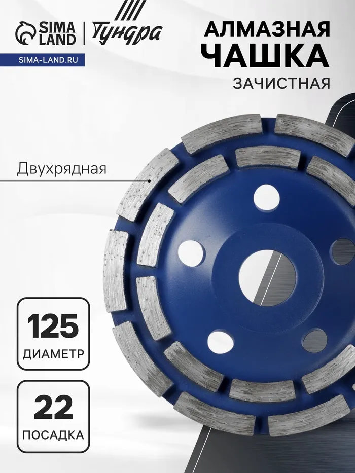 Чашка алмазная зачистная ТУНДРА, однорядная, 125 мм — Характеристики