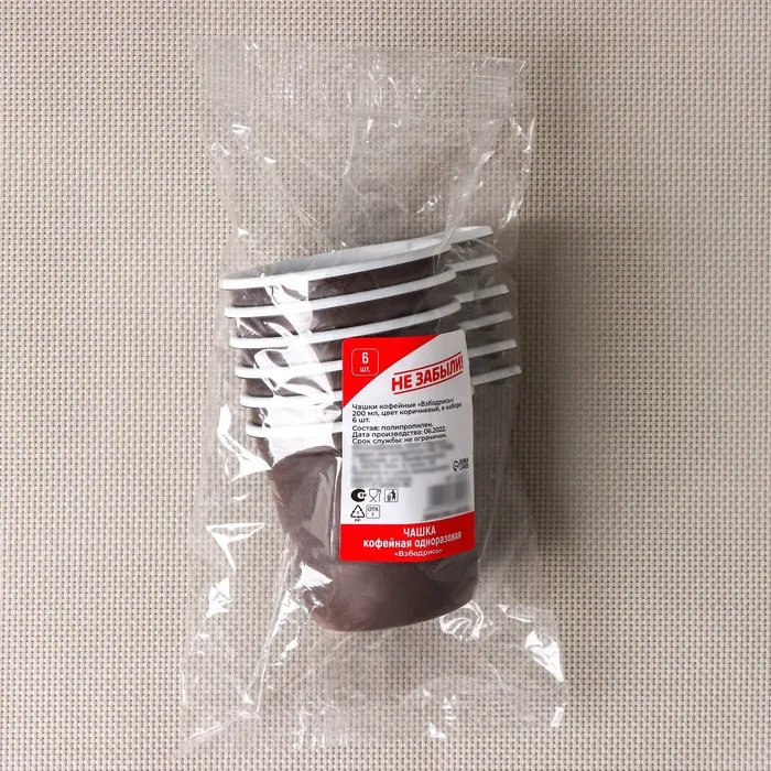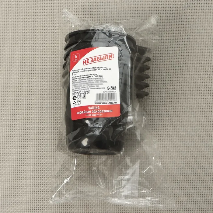 Чашки кофейные пластиковые одноразовые Не ЗАБЫЛИ! «Взбодрись», 200 мл, в наборе 6 шт, чёрные и коричневые с белым — Характеристики