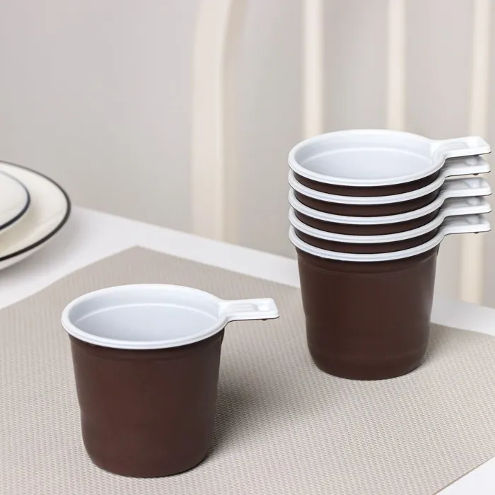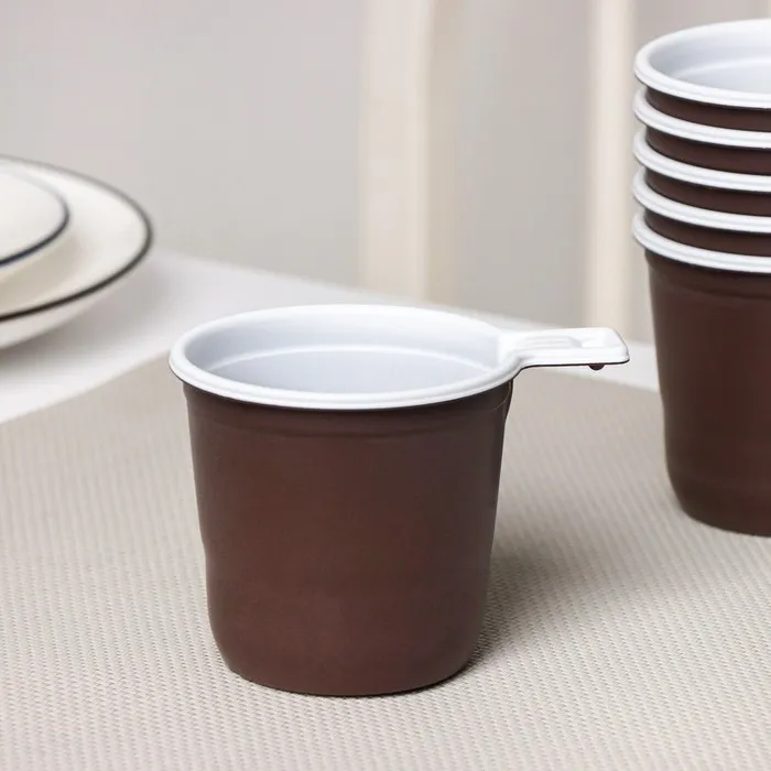 Наслаждайтесь любимым кофе в любом месте с этим стильным набором пластиковых одноразовых кофейных чашек. Идеальны для пикников, офисов, поездок и других случаев, когда важна простота, гигиеничность и стильный внешний вид. В комплекте 6 чашек объемом 200 мл в коричнево-черной цветовой гамме.