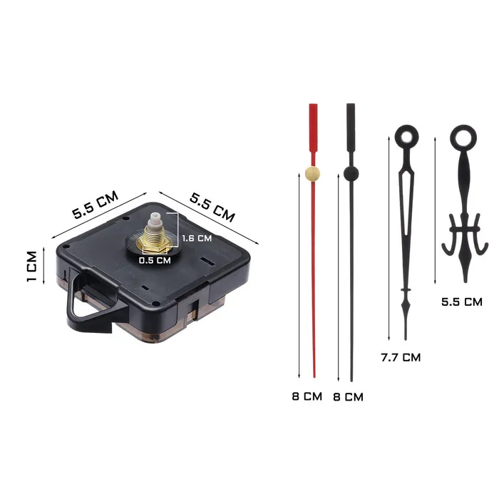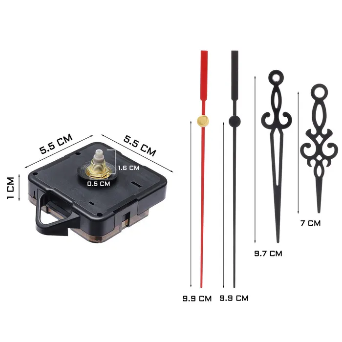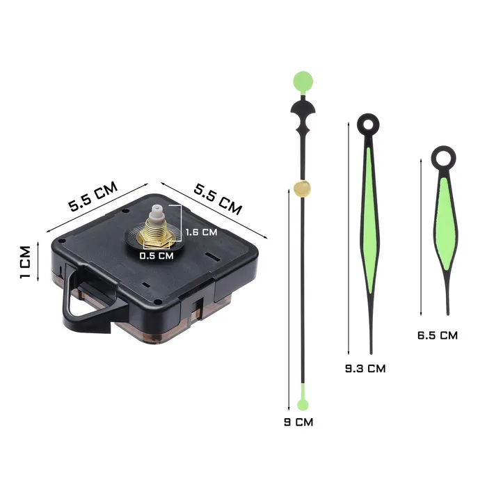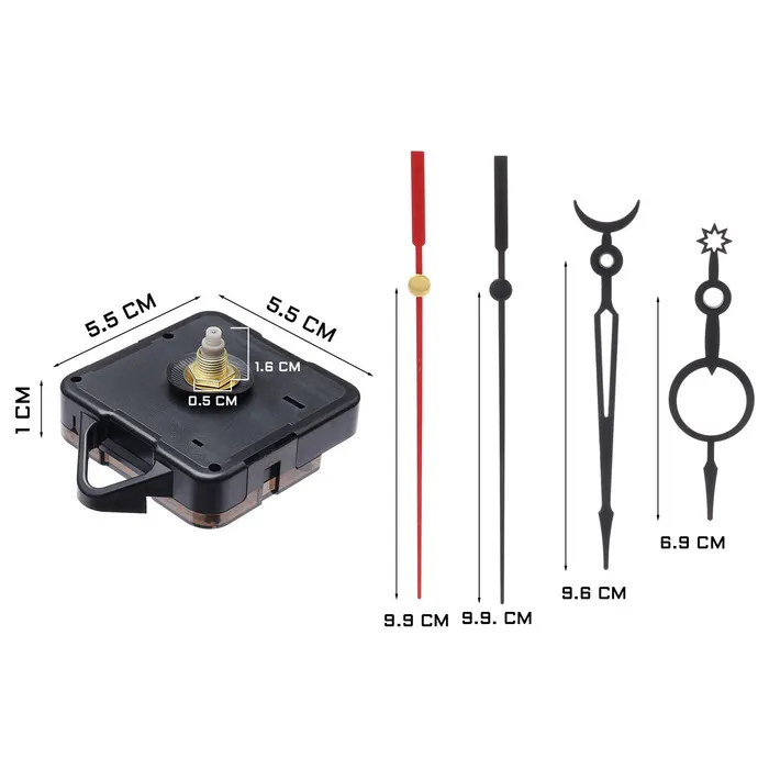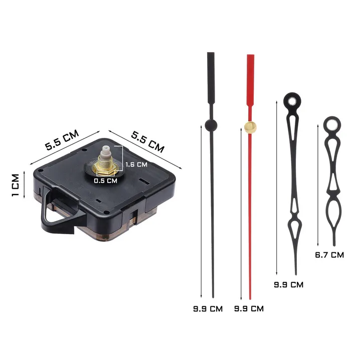 Часовой механизм со стрелками "Соломон-12", плавный ход, шток 16 мм, стрелки 48/64/70 мм