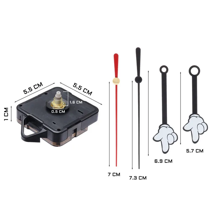 Часовой механизм со стрелками "Соломон-18", плавный ход, шток 16 мм, стрелки 51/69/74 мм