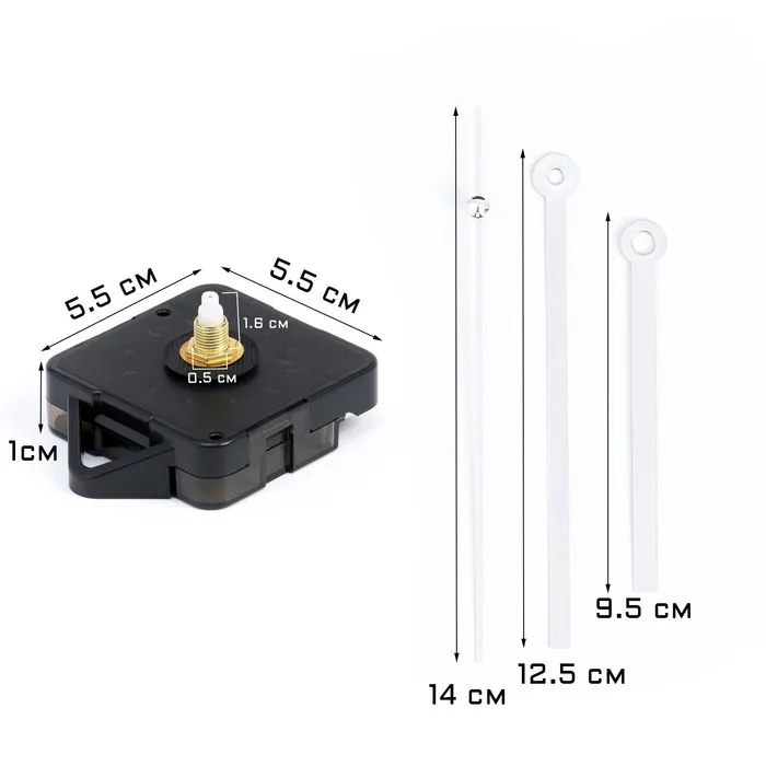 Часовой механизм с плавным ходом стрелок обеспечивает точный и бесшумный ход времени, что особенно важно для создания комфортной атмосферы в помещениях. Компактный шток длиной 16 мм и размеры стрелок позволяют использовать его в разнообразных дизайнерских решениях часов.