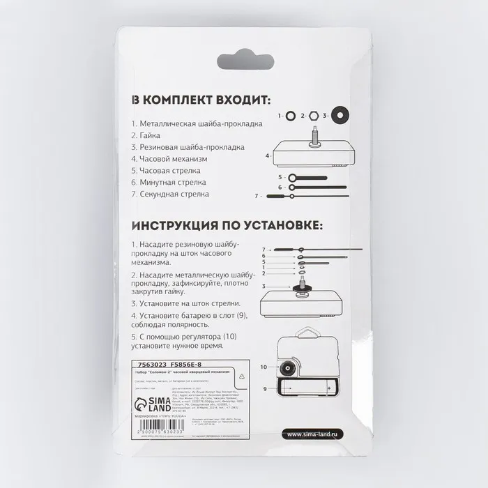 Часовой механизм со стрелками "Соломон-2", плавный ход, шток 16 мм, стрелки 60/85/120 мм — Характеристики