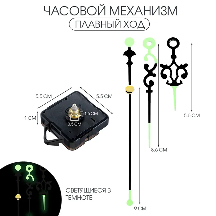 Часовой механизм со стрелками «Соломон-32», плавный ход, шток 16 мм, стрелки 55/85/80 мм — Характеристики