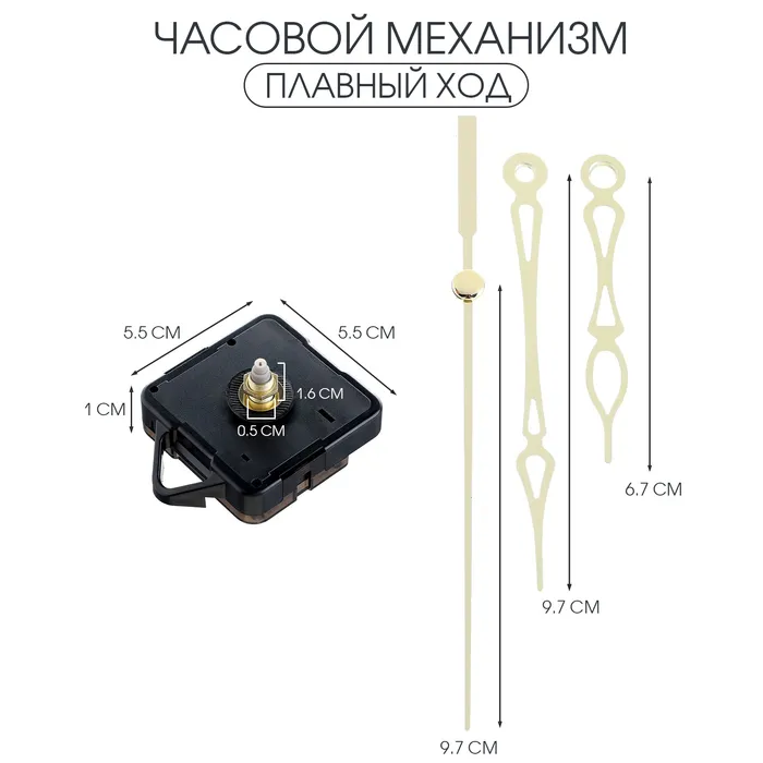 Часовой механизм со стрелками «Соломон-35», плавный ход, шток 16 мм, стрелки 67/100/105 мм — Характеристики