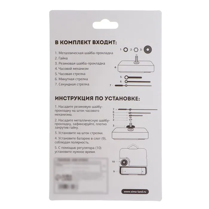 Часовой механизм со стрелками "Соломон-5", плавный ход, шток 16 мм, стрелки 70/95/110 мм — Характеристики