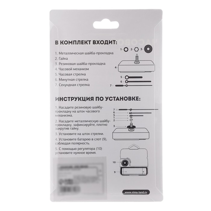 Часовой механизм со стрелками «Соломон-55», плавный ход, шток 16 мм, стрелки 60/85/90 мм — Характеристики