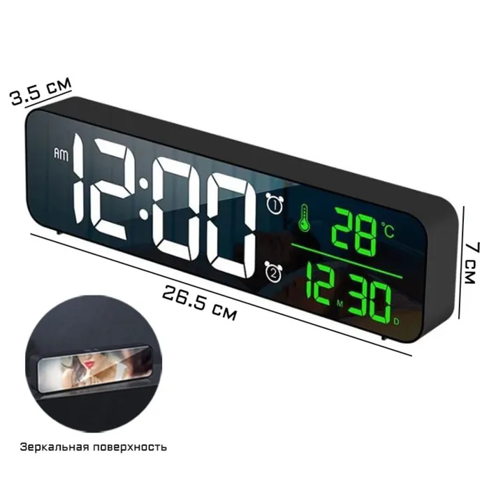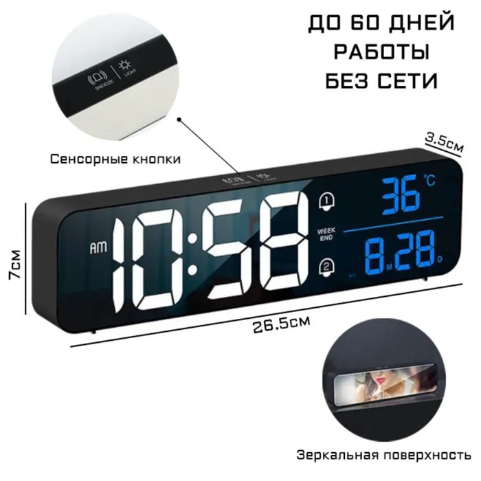 Часы настольные электронные с будильником представлены в современном минималистичном дизайне. Интерьерные часы станут прекрасным декором для дома и дачи, их можно поставить как на прикроватную тумбочку в спальне, детской комнате, гостиной так и на стол или на комод в зале, холле или на кухне. Часы настольные обладают громким будильником, ребенку и вам будет комфортно просыпаться, на работу и в школу. Будильник не требует частой замены батареек благодаря экономичному механизму.