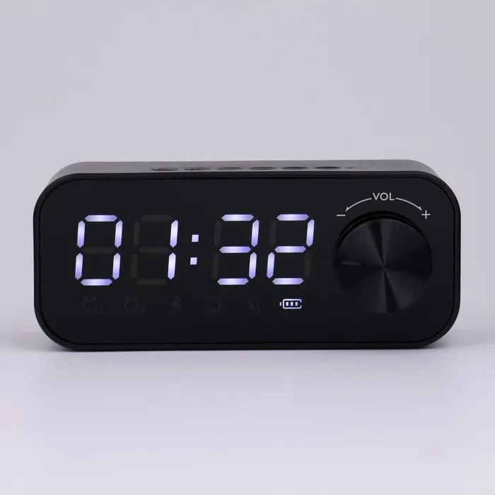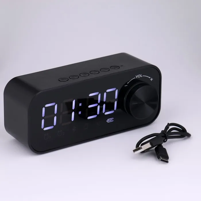 Часы - будильник электронные настольные: колонка, bluetooth, tf-карта, 14.2 х 6 см, USB, чёрные