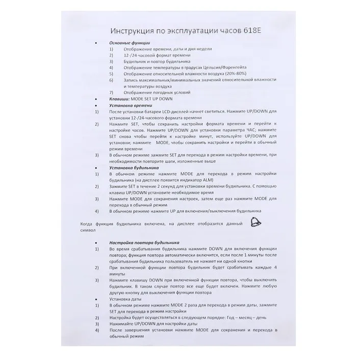 Часы - будильник электронные настольные: термометр, календарь, гигрометр, 13.3 х 7.4 см — Характеристики