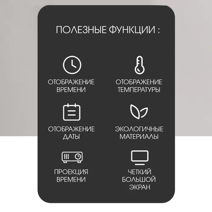 Часы настольные электронные с будильником, термометром, календарем и возможностью проецировать время на стену или потолок представлены в современном минималистичном дизайне. Интерьерные часы станут прекрасным декором для дома и дачи, их можно поставить как на прикроватную тумбочку в спальне, детской комнате, гостиной так и на стол или на комод в зале, холле или на кухне. Часы настольные обладают громким будильником, ребенку и вам будет комфортно просыпаться, на работу и в школу. Будильник не требует частой замены батареек благодаря экономичному механизму.