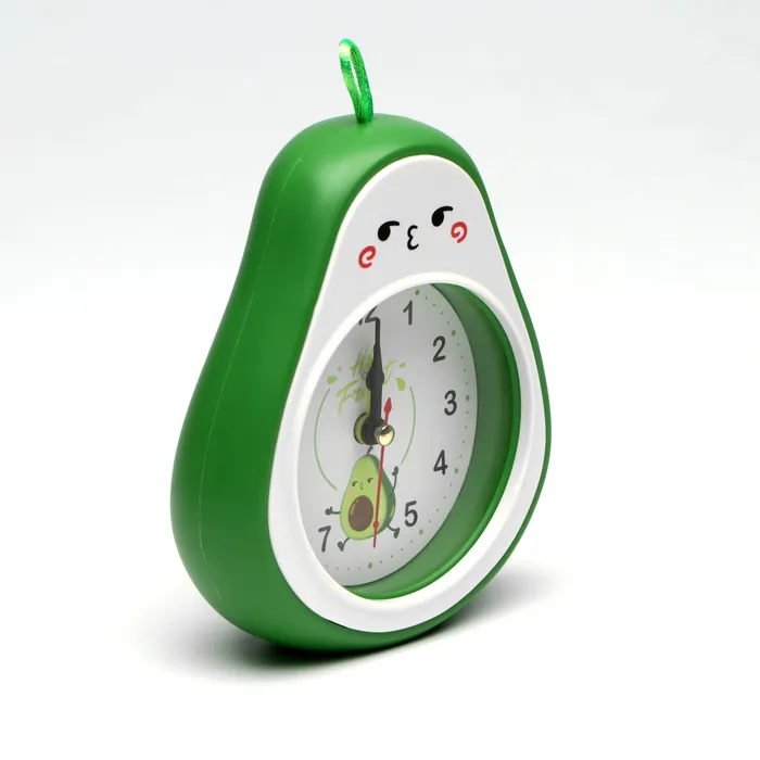 Часы с будильником представлены в ярком дизайне в форме милого авокадо, они отлично впишутся в ваш интерьер. Интерьерные часы станут прекрасным декором для дома и дачи, их можно поставить как на прикроватную тумбочку в спальне, детской комнате, гостиной так и на стол или на комод в зале, холле или на кухне. Будильник настольный имеет кварцевый механизм, который гарантирует высокую точность хода. Часы настольные обладают громким будильником, ребенку и вам будет комфортно просыпаться, на работу и в школу. Будильник на батарейках не требует частой замены батареек благодаря экономичному механизму.