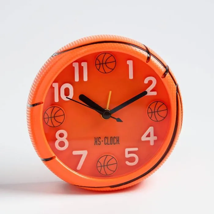 Часы с будильником представлены в ярком дизайне в форме баскетбольного мяча, они отлично впишутся в ваш интерьер. Интерьерные часы станут прекрасным декором для дома и дачи, их можно поставить как на прикроватную тумбочку в спальне, детской комнате, гостиной так и на стол или на комод в зале, холле или на кухне. Будильник настольный имеет кварцевый механизм, который гарантирует высокую точность хода. Часы настольные обладают громким будильником, ребенку и вам будет комфортно просыпаться, на работу и в школу. Будильник на батарейках не требует частой замены батареек благодаря экономичному механизму.