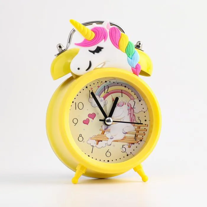 Часы-будильник настольные детские «Единорог», плавный ход, d-6.5 см, 12.5×7.5×5 см, жёлтые — Характеристики