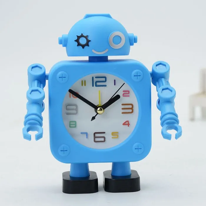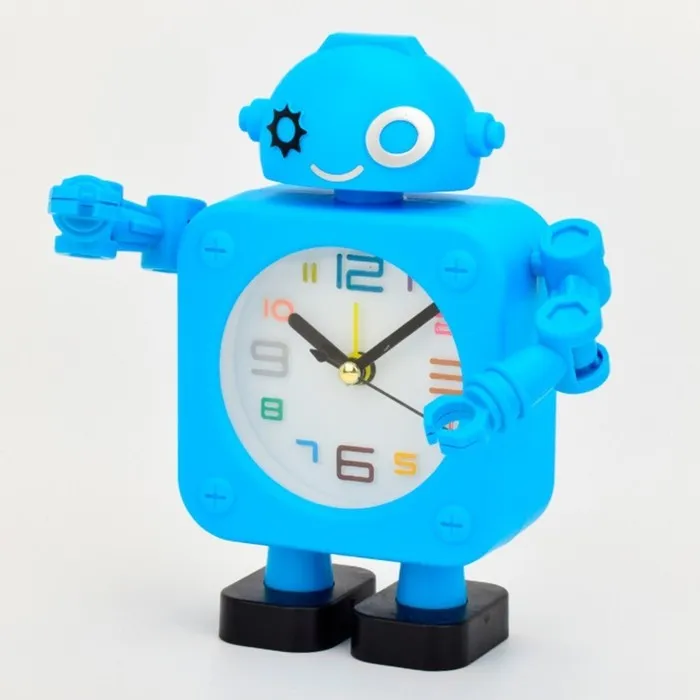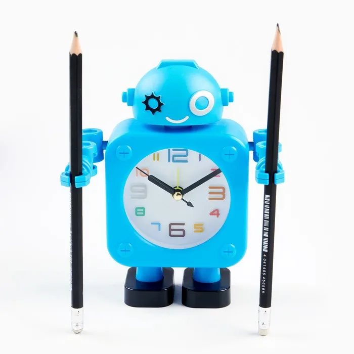Часы с будильником представлены в ярком дизайне в форме робота, они отлично впишутся в ваш интерьер. Интерьерные часы станут прекрасным декором для дома и дачи, их можно поставить как на прикроватную тумбочку в спальне, детской комнате, гостиной так и на стол или на комод в зале, холле или на кухне. Будильник настольный имеет кварцевый механизм, который гарантирует высокую точность хода. Часы настольные обладают громким будильником, ребенку и вам будет комфортно просыпаться, на работу и в школу. Будильник на батарейках не требует частой замены батареек благодаря экономичному механизму.