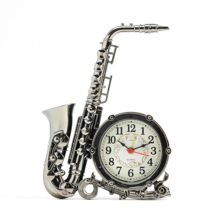 Часы с будильником представлены в классическом дизайне в форме музыкального инструмента - саксофона, они отлично впишутся в ваш интерьер. Интерьерные часы станут прекрасным декором для дома и дачи, их можно поставить как на прикроватную тумбочку в спальне, детской комнате, гостиной так и на стол или на комод в зале, холле или на кухне. Будильник настольный имеет кварцевый механизм, который гарантирует высокую точность хода. Часы настольные обладают громким будильником, ребенку и вам будет комфортно просыпаться, на работу и в школу. Будильник на батарейках не требует частой замены батареек благодаря экономичному механизму.