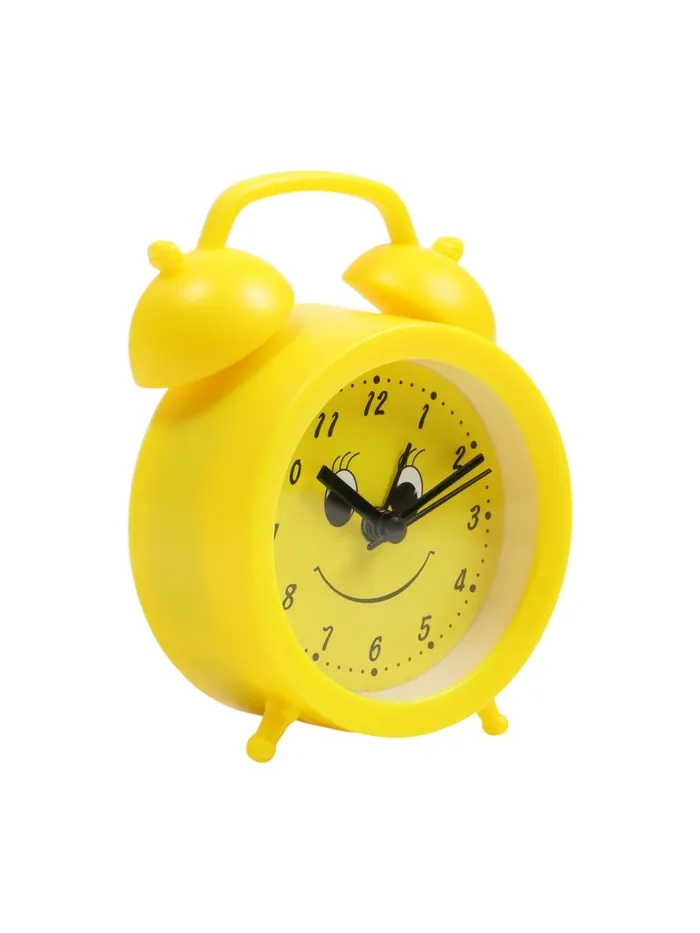 Часы - будильник настольные "Смайл", дискретный ход, 9 х 12 см, 1хАА, жёлтые