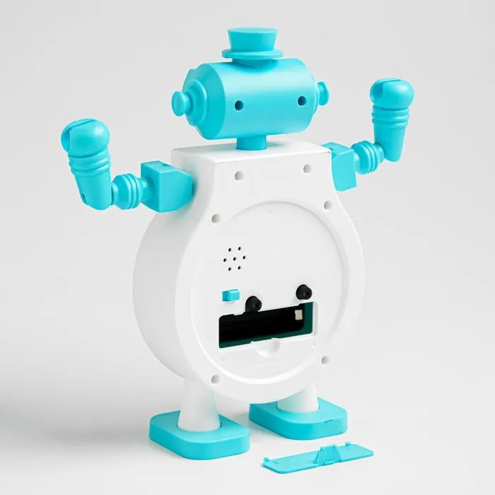 Часы с будильником представлены в ярком дизайне в форме милого робота, они отлично впишутся в ваш интерьер. Интерьерные часы станут прекрасным декором для дома и дачи, их можно поставить как на прикроватную тумбочку в спальне, детской комнате, гостиной так и на стол или на комод в зале, холле или на кухне. Будильник настольный имеет кварцевый механизм, который гарантирует высокую точность хода. Часы настольные обладают громким будильником, ребенку и вам будет комфортно просыпаться, на работу и в школу. Будильник на батарейках не требует частой замены батареек благодаря экономичному механизму.