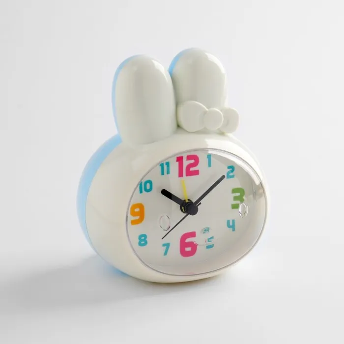 Часы с будильником представлены в ярком дизайне с торчащими заячьими ушками, они отлично впишутся в ваш интерьер. Интерьерные часы станут прекрасным декором для дома и дачи, их можно поставить как на прикроватную тумбочку в спальне, детской комнате, гостиной так и на стол или на комод в зале, холле или на кухне. Будильник настольный имеет кварцевый механизм, который гарантирует высокую точность хода. Часы настольные обладают громким будильником, ребенку и вам будет комфортно просыпаться, на работу и в школу. Будильник на батарейках не требует частой замены батареек благодаря экономичному механизму.