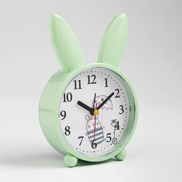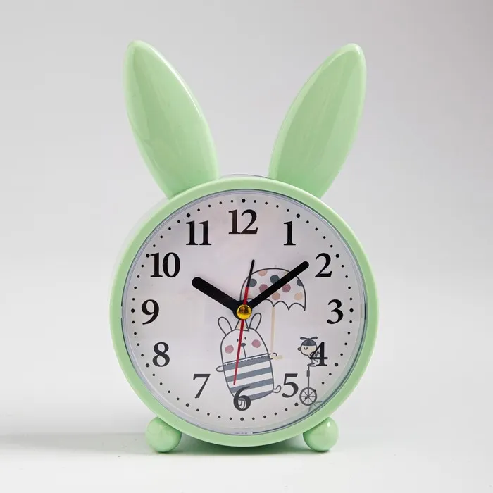 Часы с будильником представлены в ярком дизайне с торчащими ушками, они отлично впишутся в ваш интерьер. Интерьерные часы станут прекрасным декором для дома и дачи, их можно поставить как на прикроватную тумбочку в спальне, детской комнате, гостиной так и на стол или на комод в зале, холле или на кухне. Будильник настольный имеет кварцевый механизм, который гарантирует высокую точность хода. Часы настольные обладают громким будильником, ребенку и вам будет комфортно просыпаться, на работу и в школу. Будильник на батарейках не требует частой замены батареек благодаря экономичному механизму.