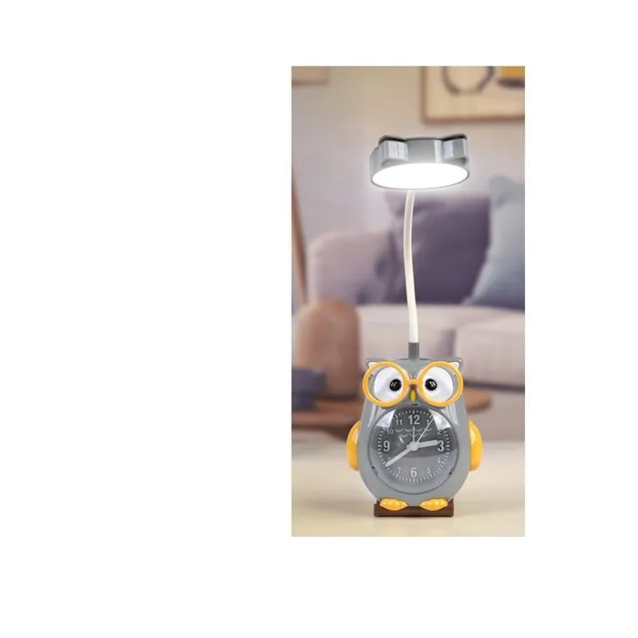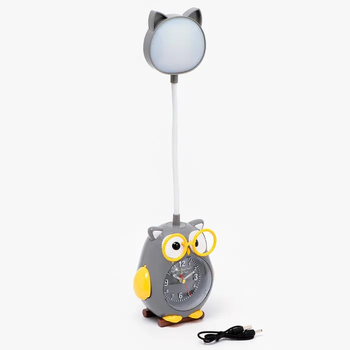Часы будильник настольные с подсветкой представлены в ярком дизайне в форме совы, они отлично впишутся в ваш интерьер. Интерьерные часы со светильником станут прекрасным декором для дома и дачи, их можно поставить как на прикроватную тумбочку в спальне, детской комнате, гостиной так и на стол или на комод в зале, холле или на кухне. Особенностью данного настольного будильника является наличие подсветки. На циферблате изображены яркие разноцветные арабские цифры и три стрелки, легко читаются, по ним ребенку будет удобно учиться определять время. Часы можно использовать в качестве ночника или офисной лампы на столе школьника. На задней панели помимо отсека для батарейки типа АА (в комплект не входит) находятся переключатель включения/выключения будильника, колесики чтобы настроить текущее время и время пробуждения, а также кнопка для включения/выключения подсветки. Другая особенность этих часов в том, что они могут работать также от сети через входящий в комплект кабель USB, также в комплекте аккумулятор.