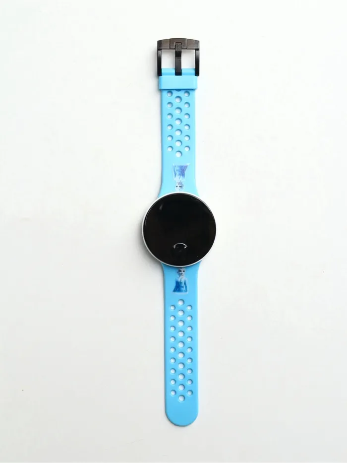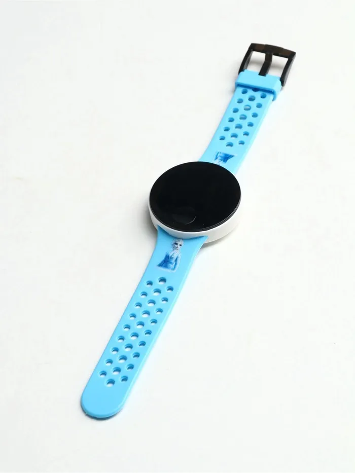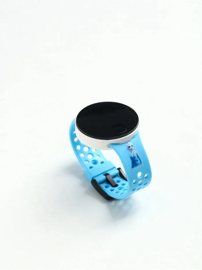 - Круглый корпус и ремешок голубого цвета создают яркий и стильный дизайн.