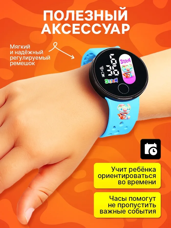 Часы станут отличным помощником в развитии у ребёнка навыка ориентирования во времени. Благодаря компактному размеру и мягкому ремешку часы удобно сидят на руке, не вызывая дискомфорта.