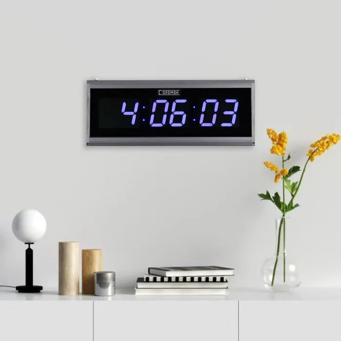 Часы электронные настенные, 19 х 3 х 48 см, синие цифры — Характеристики
