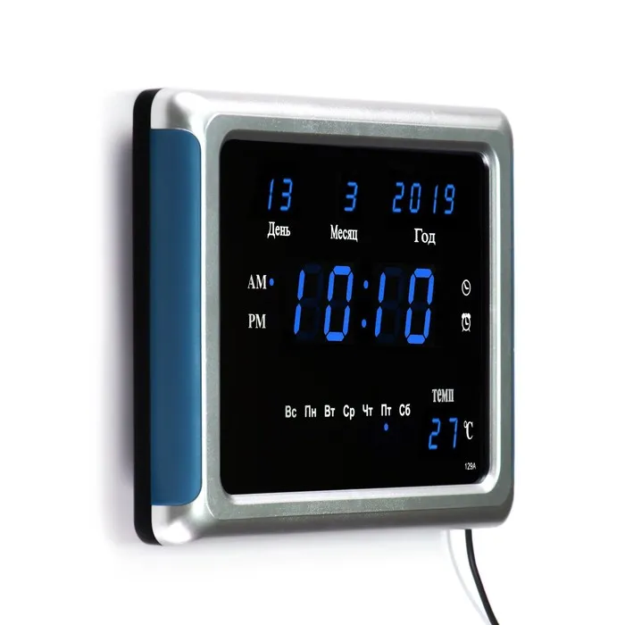 Часы электронные настенные, настольные, с будильником, 17 х 2.5 х 23 см, USB — Характеристики