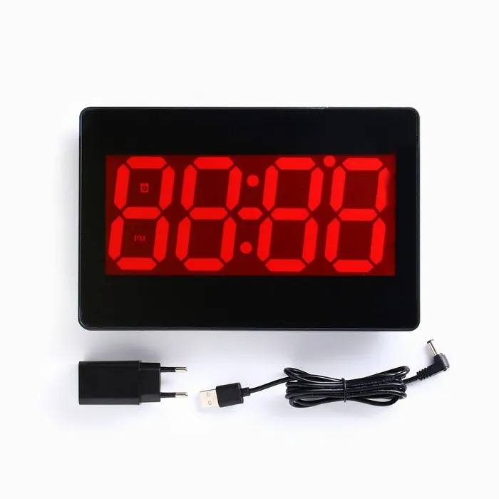 Часы электронные настенные, настольные "Соломон", будильник, 15.5 х 23.5 см, красная индикация, черные — Характеристики