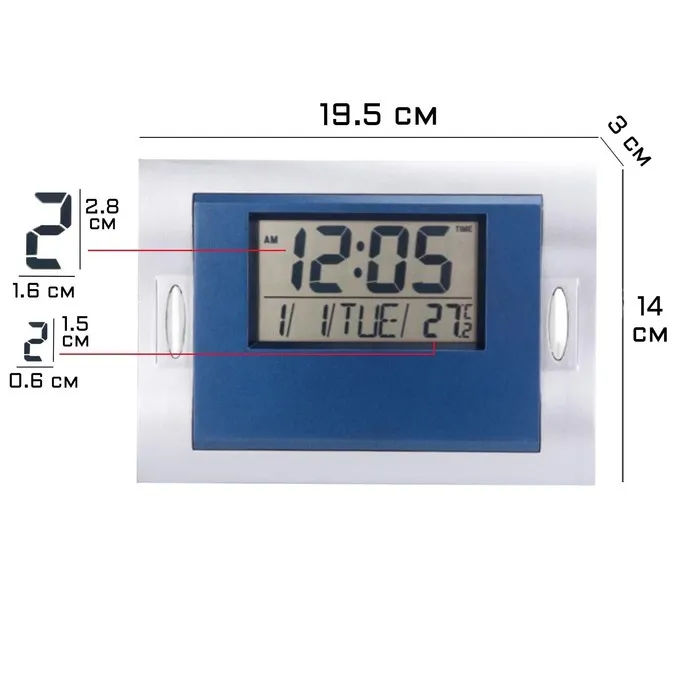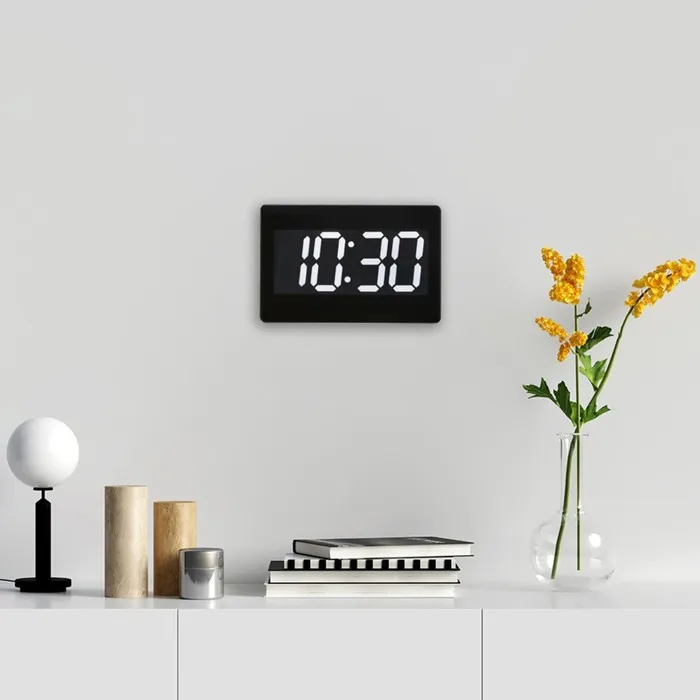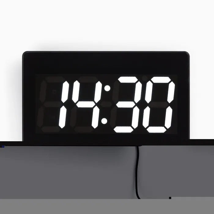 Часы электронные настенные, настольные "Соломон", с будильником, 15.5 х 23.5 см, белая индикация, черные — Характеристики