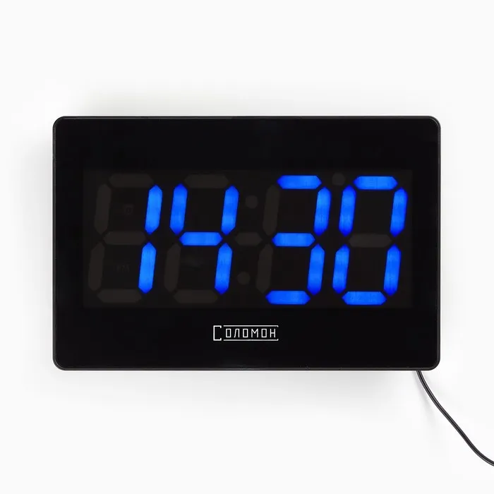 Часы электронные настенные, настольные "Соломон", с будильником, 15.5 х 23.5 см, синяя индикация, черные — Характеристики