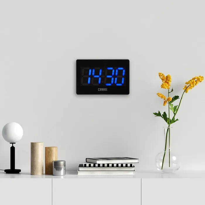 Часы электронные настенные, настольные "Соломон", с будильником, 15.5 х 23.5 см, синяя индикация, черные