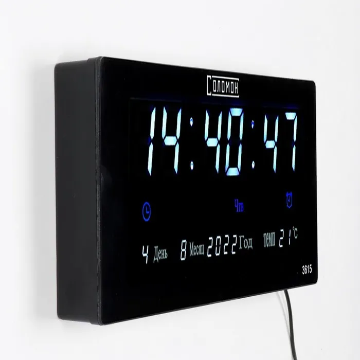 Часы электронные настенные, с будильником, 15 х 36 см, белая индикация, черные — Характеристики