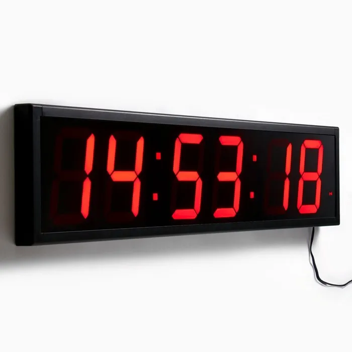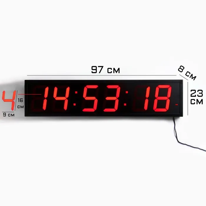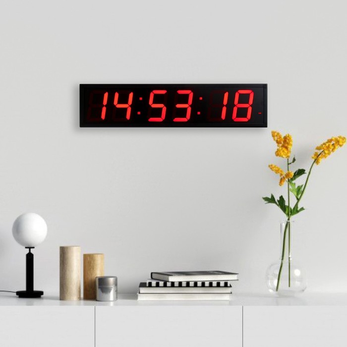 Часы электронные настенные "Соломон", таймер, секундомер, 97 х 8 х 23 см, красная индикация, чёрные — Характеристики