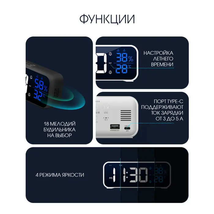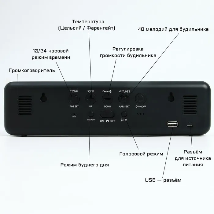 Часы с будильником представлены в минималистичном современном дизайне, они отлично впишутся в ваш интерьер. Интерьерные часы станут прекрасным декором для дома и дачи, их можно поставить как на прикроватную тумбочку в спальне, детской комнате, гостиной так и на стол или на комод в зале, холле или на кухне. Будильник настольный имеет кварцевый механизм, который гарантирует высокую точность хода. Часы настольные обладают громким будильником, ребенку и вам будет комфортно просыпаться, на работу и в школу. Будильник на батарейках не требует частой замены батареек благодаря экономичному механизму.