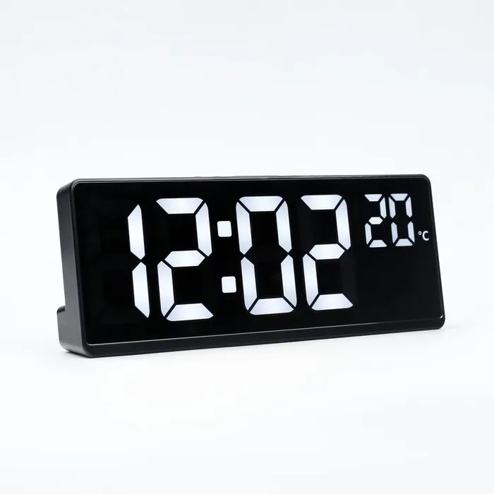 Часы электронные настольные, с будильником, термометром, 2 ААА, белые цифры,17.5 х 6.8 см — Характеристики