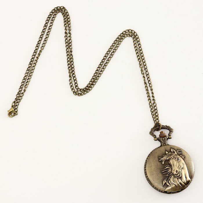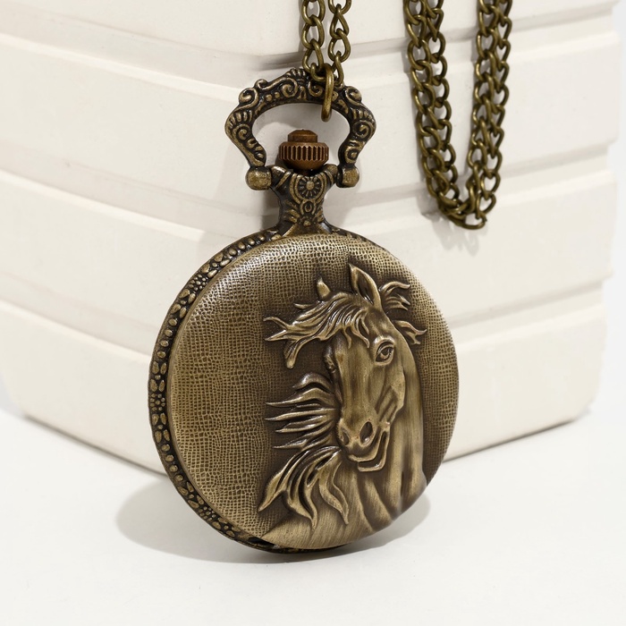 Часы карманные "Конь", кварцевые, d=3.5 см, цепочка 80 см