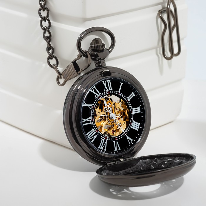 Часы карманные механические "Скелетон", на цепочке, циферблат d=4.5 см, цепочка 30 см — Характеристики