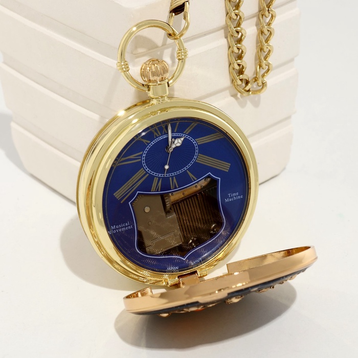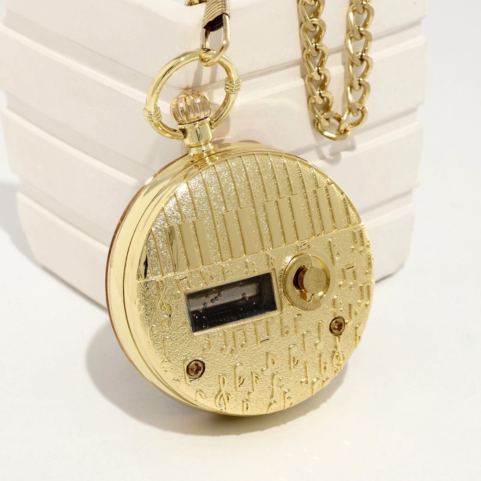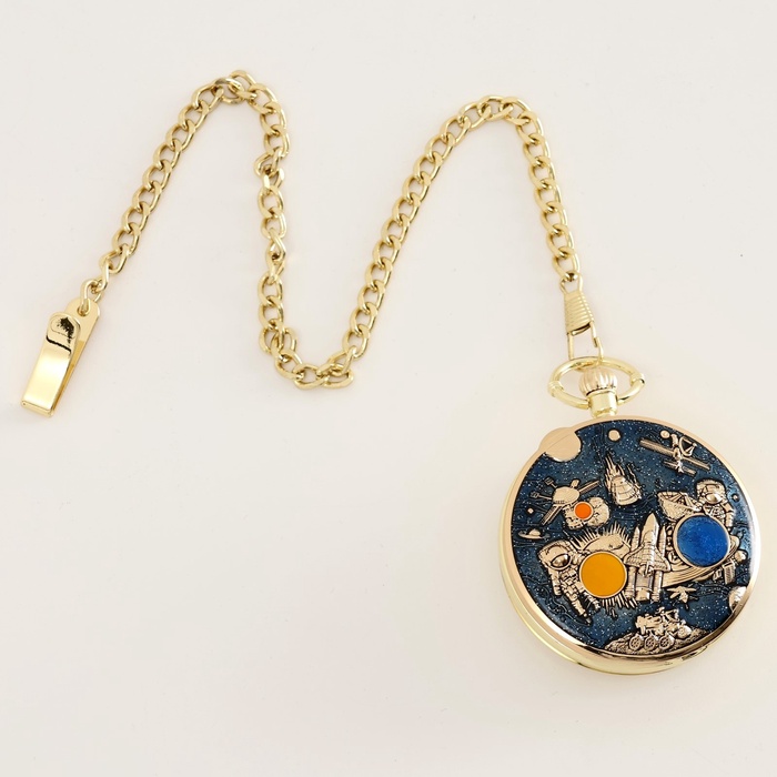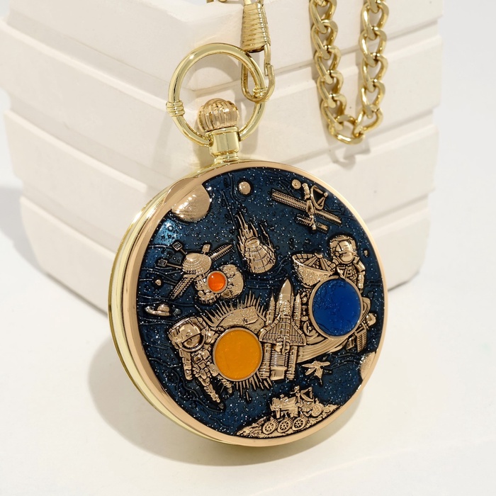 Часы карманные, музыкальные "Космос", кварцевые, d циферблата - 4.9см, цепочка -30 см ,золото 991058 — Характеристики