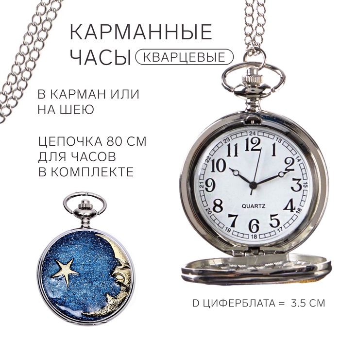 Часы карманные "Сердце", кварцевые, d=1.5 см, цепочка 80 см — Характеристики