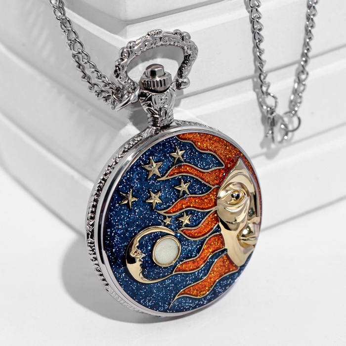 Часы карманные "Солнце", кварцевые, циферблата d=3.5 см, цепочка 80 см