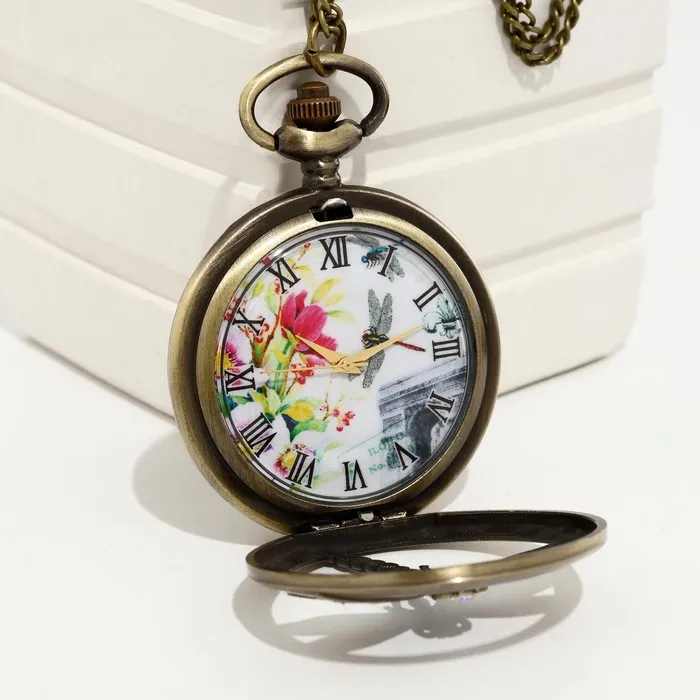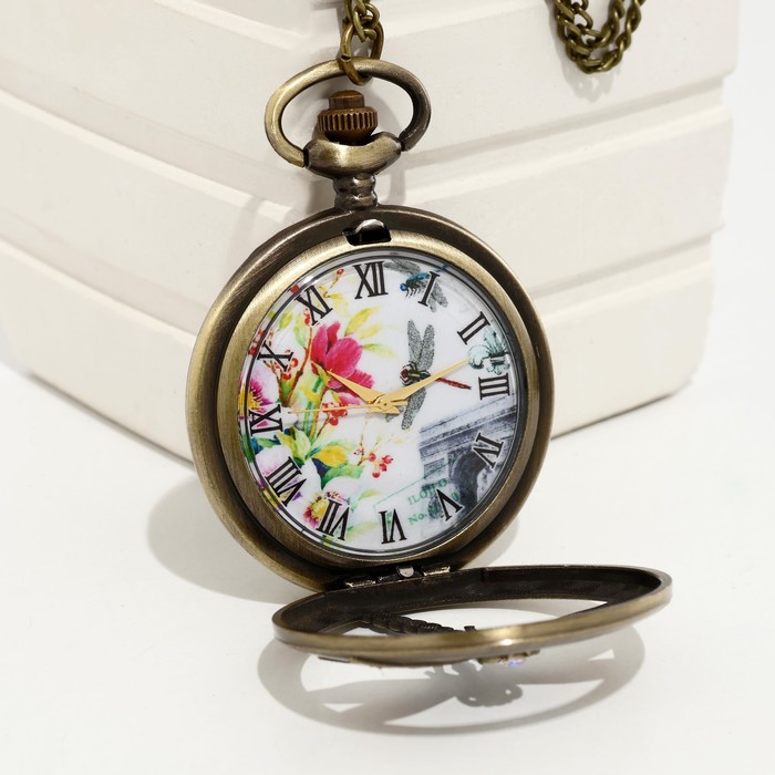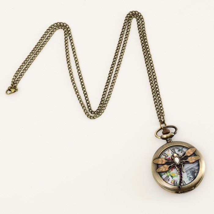 Часы карманные "Стрекоза", кварцевые, циферблат d=4.7 см, цепочка 80 см