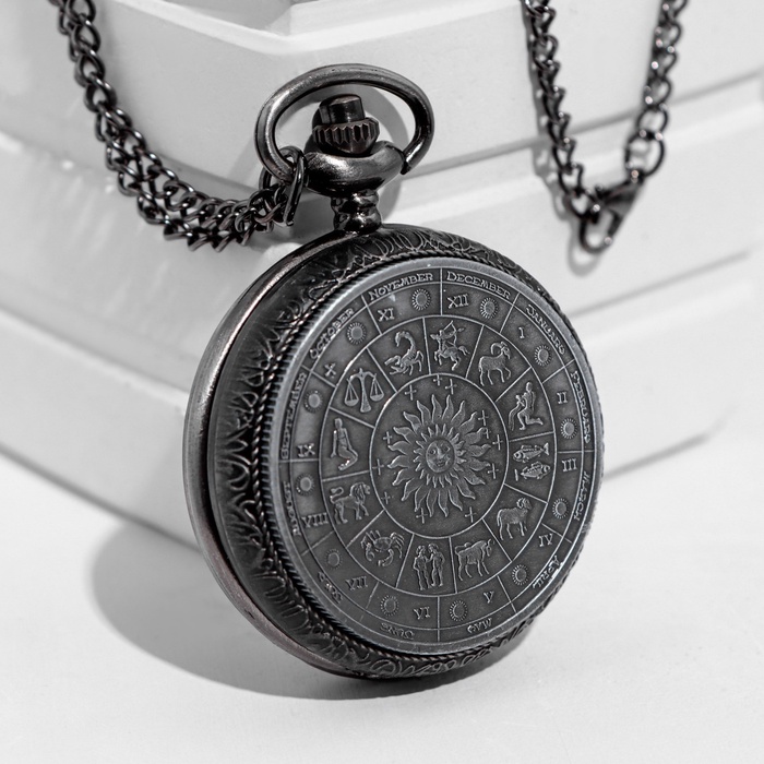 Часы карманные "Знаки зодиака", кварцевые, циферблата d=3.5 см, цепочка 80 см