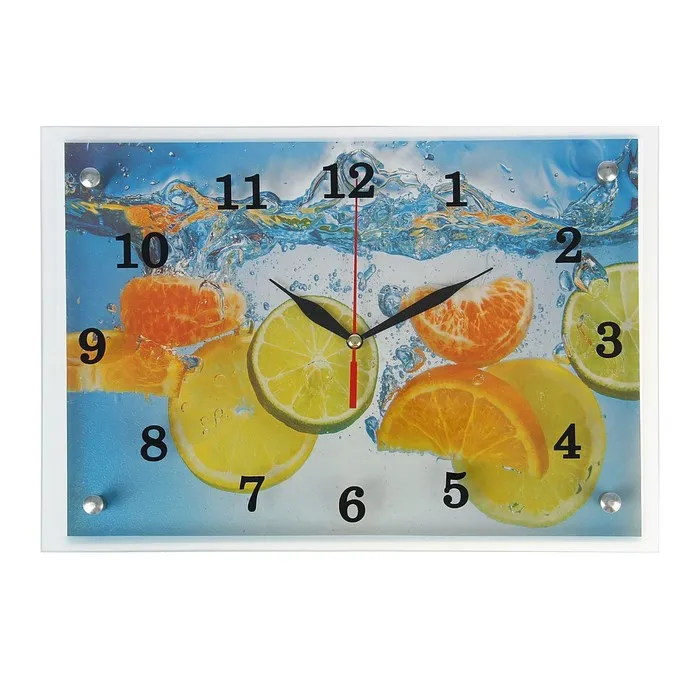 Часы из стекла Сюжет размером 25 х 35 см - это элегантный и стильный аксессуар, они имеют прямоугольную форму, которая добавляет особый шарм в интерьер вашего дома. Механизм бесшумный, батарейка формата АА, в комплект не входит. Тип индикации - арабские цифры, что делает время на часах четко видимым и легко читаемым.