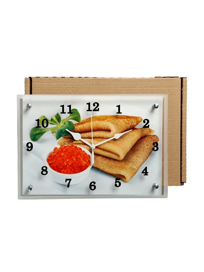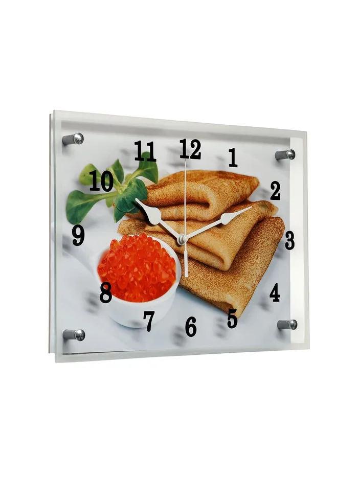 Часы-картина настенные, интерьерные "Блины с красной икрой", бесшумные, 25 х 35 см — Характеристики